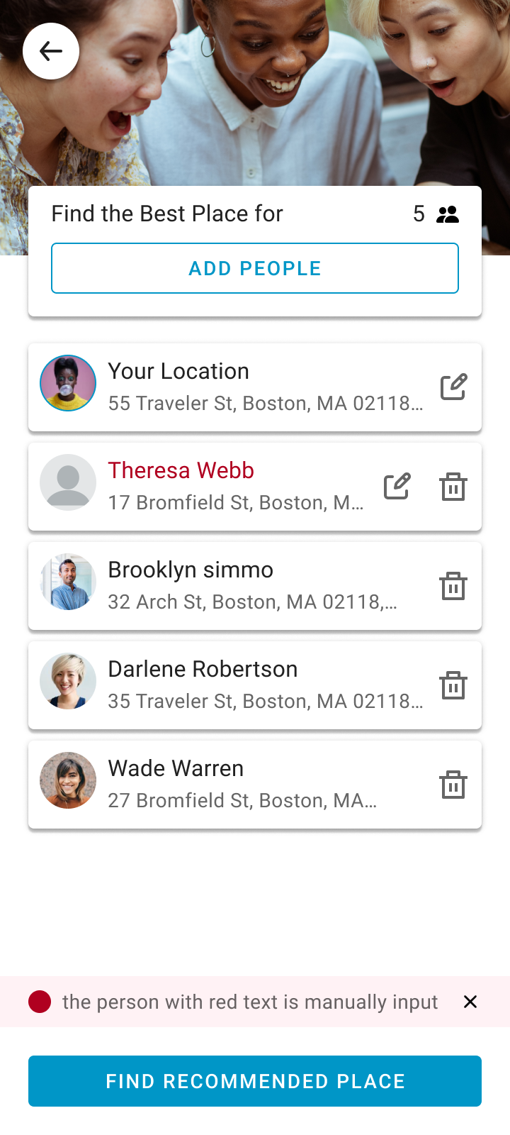 ![]() | The list of invited people will help users review where everyone is traveling from. | |