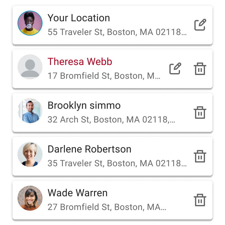 ![]() | ![]() | Users can add another person from their friend list, where locations are updated automatically, or through manual input, where users must enter the location themselves. Manual input is necessary because Astral is a new product and currently has no users. |